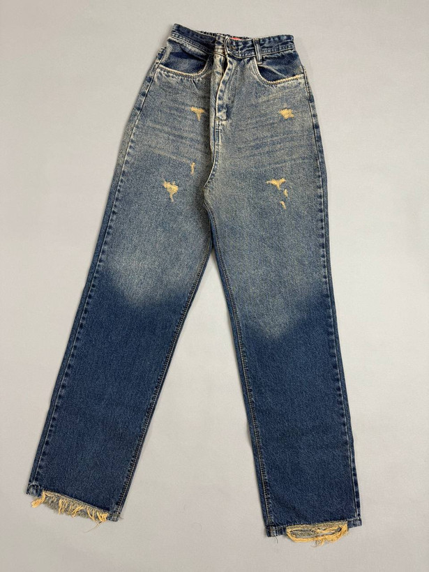 شلوار زنانه جین نیم بگ دورنگ سنگشور